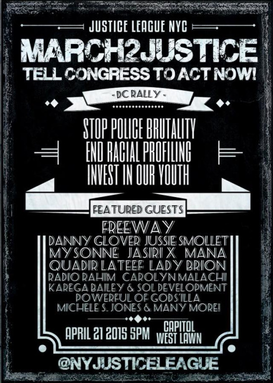 We MARCH in solidarity with our elders, our youth, our incarcerated brothers and sisters, and the families and communities of those impacted by police brutality. We MARCH on behalf of Eric Garner. And Akai Gurley. And Jesse Hernandez. And Rekia Boyd. And Tamir Rice. And Michael Brown. And Renisha McBride. And London Colvin. And John Crawford III. And Miriam Carey. And Anthony Baez. And Ramarley Graham.
