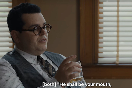 Once the lawyers learn that Marshall is forbidden to speak at all at the trial, they have a short, tense conversation — while another lawyer who might take the case waits on the telephone. Without preamble, Marshal intones: “And the Lord commanded Moses to enlist his brother’s help.” Friedman recognizes the reference and joins in, saying along with Marshall: “He shall be your mouth, and you shall be as God to him.”