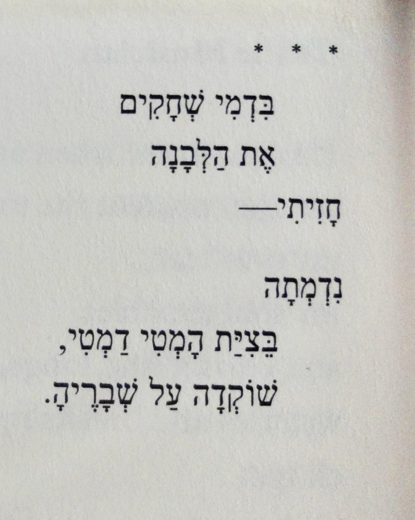 — Translation by Yosefa Raz, from above referenced Women’s Hebrew Poetry volume. Below is the Hebrew.