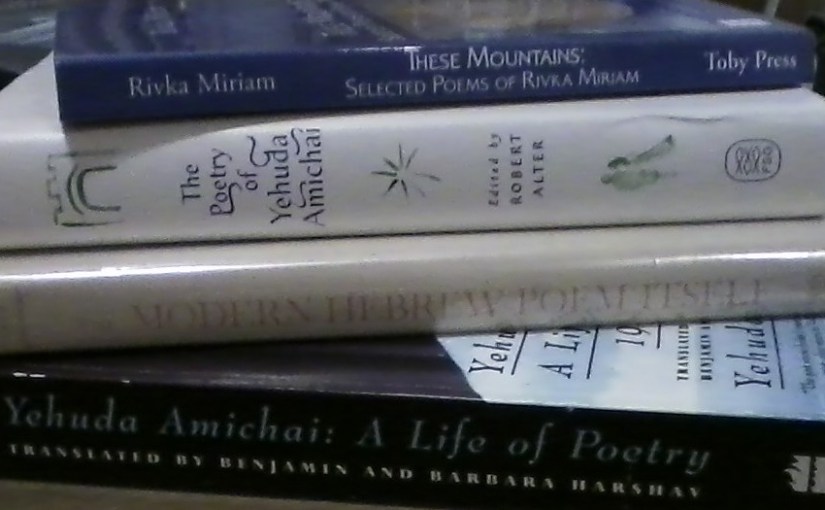 Our earliest readings were from Patuach Sagur Patuach [Open Closed Open], Amichai’s last published work. It is available in in Hebrew (Tel Aviv: Schocken, 1998) and in English (NY: Harcourt, 2000; Chana Bloch and Chana Kronfeld, translators; available in hardcover and trade paper). No bilingual edition is available (yet). The group is currently exploring earlier poems — some found in The Poetry of Yehuda Amichai, edited by Robert Alter. (NY: Farrar, Straus & Giroux, 2015), and some in Yehuda Amichai: A Life in Poetry, 1948-1994, translated by Benjamin & Barbara Harshav (NY: Harper Collins, 1994).